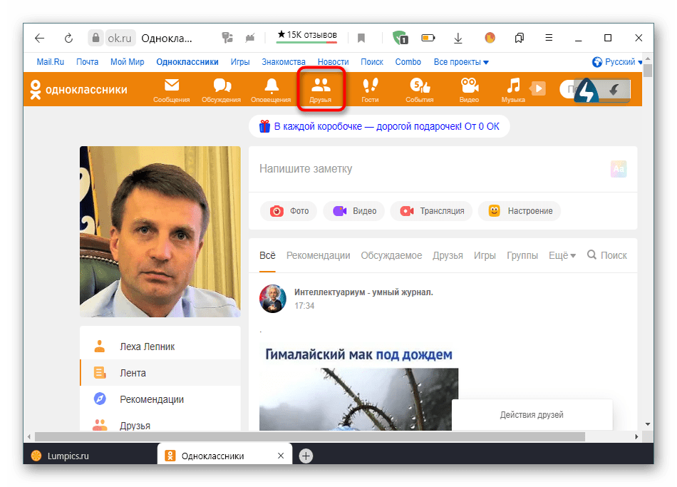 - Зайти на сайт Одноклассники;