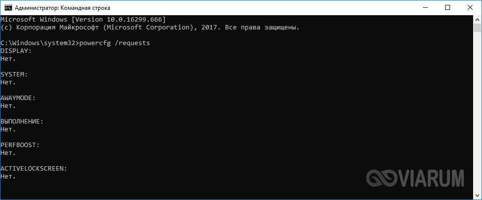 Не мешает также выполнить в командной строке команду powercfg /requests для получения списка запросов питания приложениями и драйверами, препятствующими отключению рабочей станции.