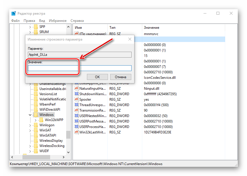 Справа открываем AppInit_DLLs.
