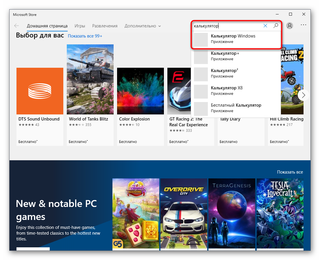 Чтобы скачать и установить аналогичный калькулятор, воспользуемся магазином Windows. Зайдите в него и введите в поиске соответствующее слово или фразу. В результатах вы увидите множество калькуляторов, некоторые из которых имеют больше возможностей, чем стандартное приложение.