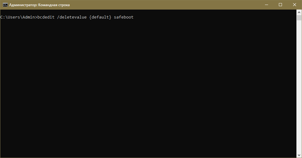 - После завершения процедуры можно отключить безопасный режим, используя команду, указанную ниже.