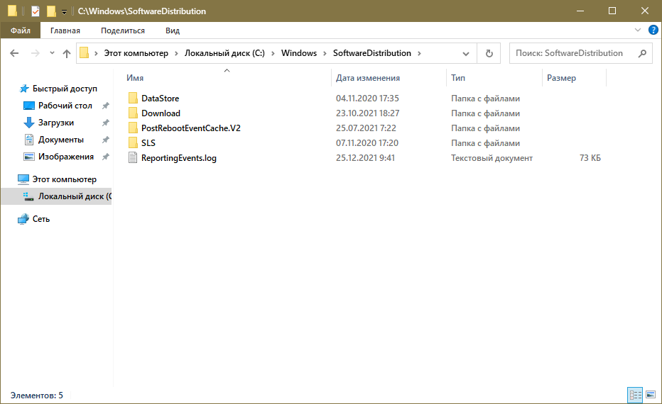 Найти кэш можно в специальной папке, которая называется «SoftwareDistribution». Ее расположение и содержимое наглядно видно на скриншоте: