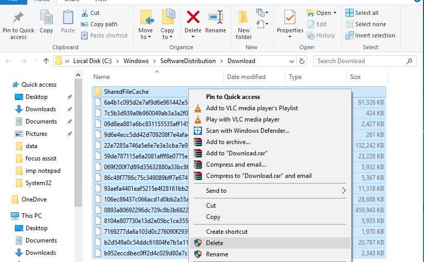 - Перейти кC:WindowsSoftwareDistributionDownload