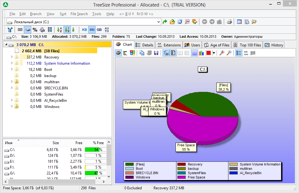 В бесплатной программе WizTree вы узнаете, какие файлы занимают место на диске. Программа работает на русском языке, есть портативная (portable) версия приложения.