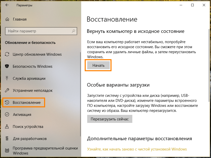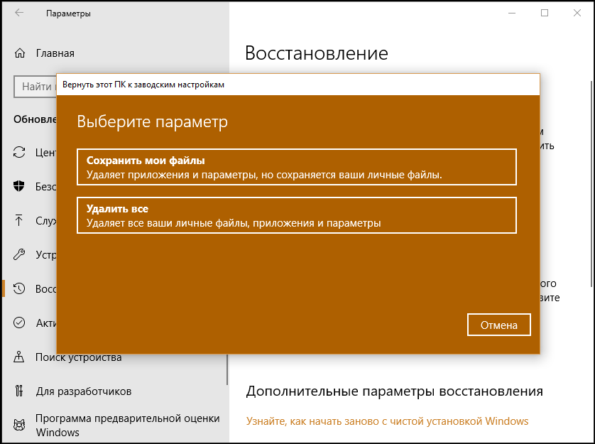 Возвращаем компьютер к заводским настройкам