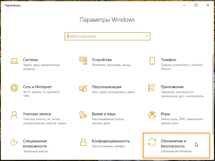 Открываем раздел настроек «Обновление и безопасность»