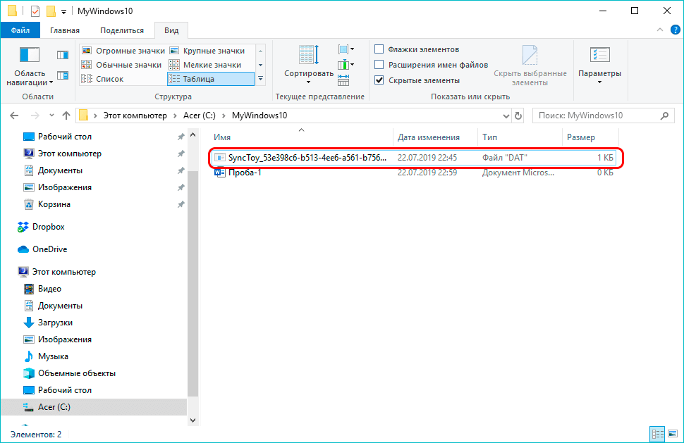 Примечание: В результате проделанных действий в синхронизированных папках появятся скрытые файлы с расширением “dat”. Удалять их нельзя, так как они нужны для работы программы.