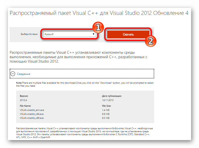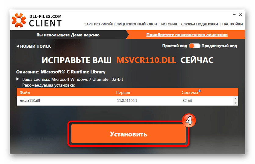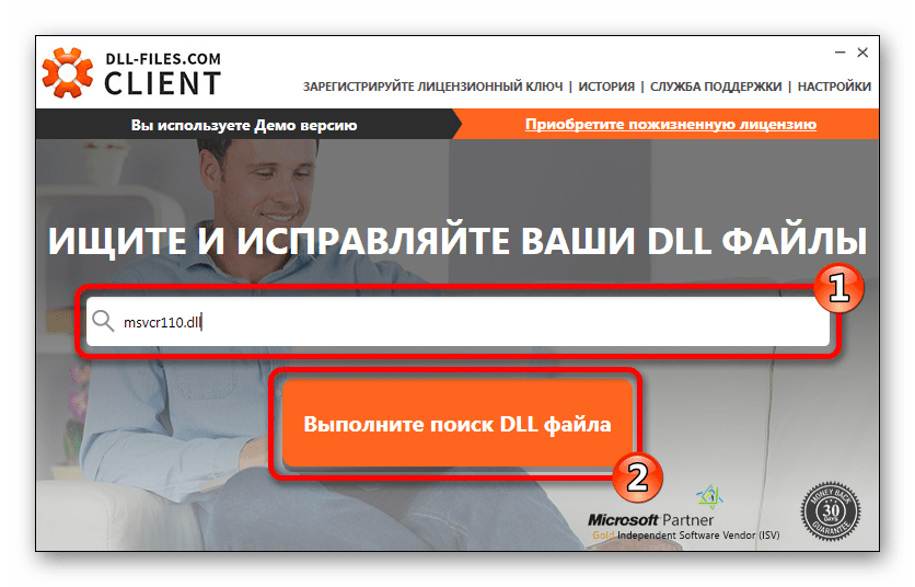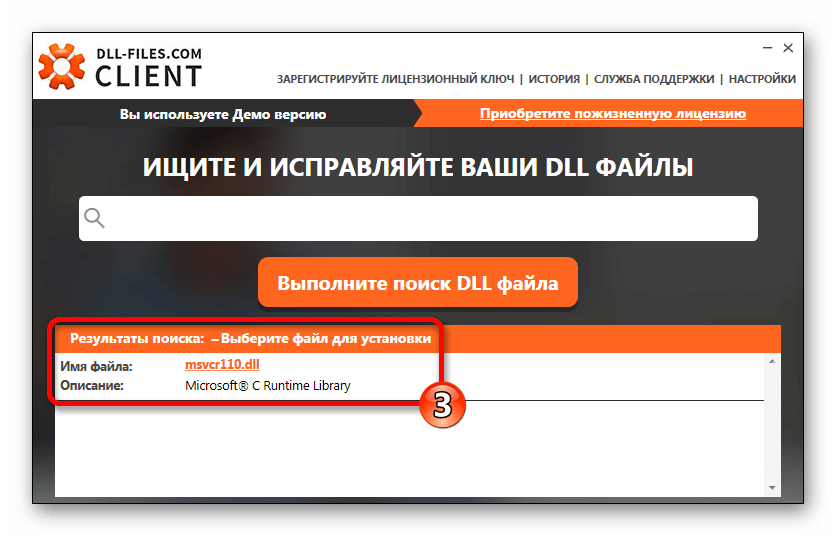 В случае с msvcr110.dll у нас имеется три варианта решения проблемы. Это — использование клиента DLL-Files.com, установка пакета C++ 2012 Redistributable и копирование вручную. Первый вариант потребует установки платного приложения, а следующие два могут быть осуществлены бесплатно.