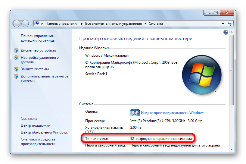 Далее потребуется выбрать вариант для конкретного случая. Имеются две разновидности — 32 и 64-битные. Чтобы узнать разрядность вашего компьютера, откройте «Свойства», нажав на «Компьютер» правой кнопкой мыши на рабочем столе. В открывшемся окне вы увидите необходимую информацию.