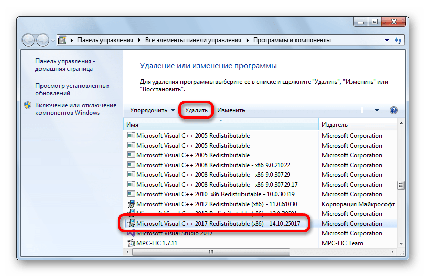 - Повторить деинсталляцию с остальной частью Microsoft Visual C++ Redistributable.