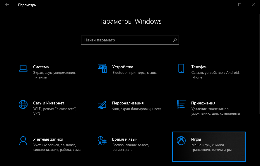 - В интерфейсе «Параметров» перейдите в раздел «Игры».